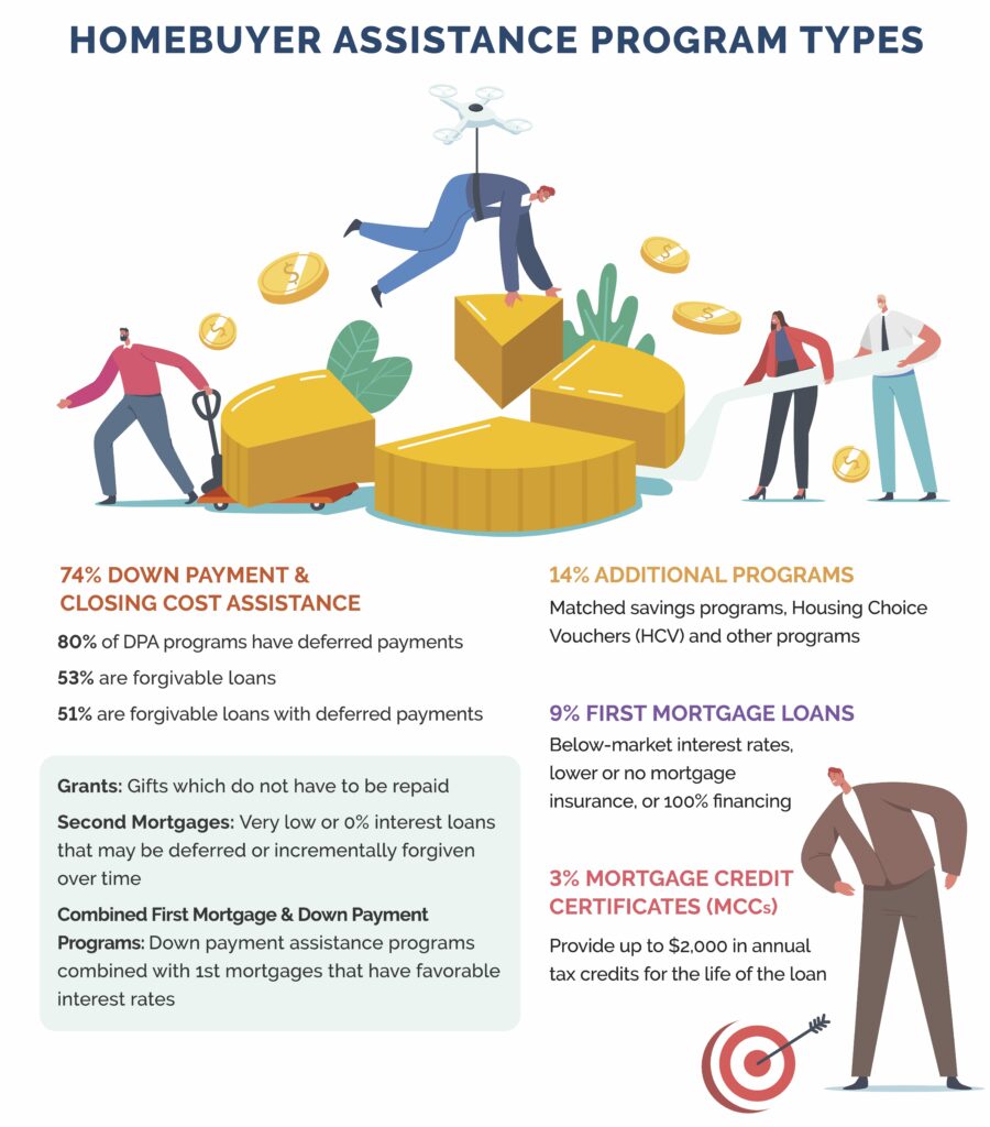A complete, state-by-state list of homebuyer assistance programs can be viewed here. You can also download the full infographic.